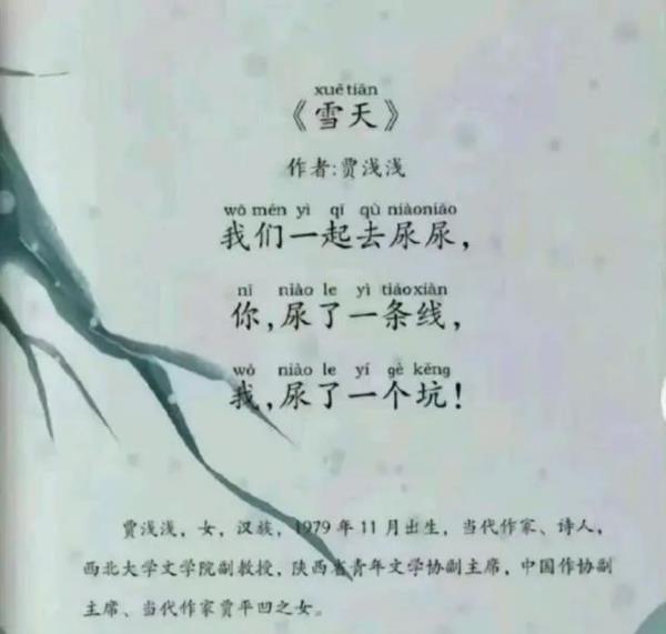 比起看待贾浅浅的屎尿诗歌来,我相信多数人更关注贾浅浅是何德何能,当了文学院的副教授,还当上了陕西省青年文学协会副主席(湖北的汪主席表示很欣慰),出版了几本书,发表了很多作品,搜索其文,满眼都是各类作家对她的评价如何如何之好,难道就因为是贾平凹的女儿?