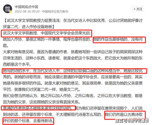 但二代浅浅们恐怕也不只是想维持一下生活那么简单,他们还想去做空头文艺家,想捞取更多的文化资本和符号资本,这不,凭借爸爸是文学刊物的主编、著名作家的身份,以及文艺界的关系,换个刊物发表作品,就会有很多批评家为她保驾护航,后来又有方方、崔化钠之流捧场,不停地叠buff,但人家不偷不抢,我们又能拿她怎样呢?