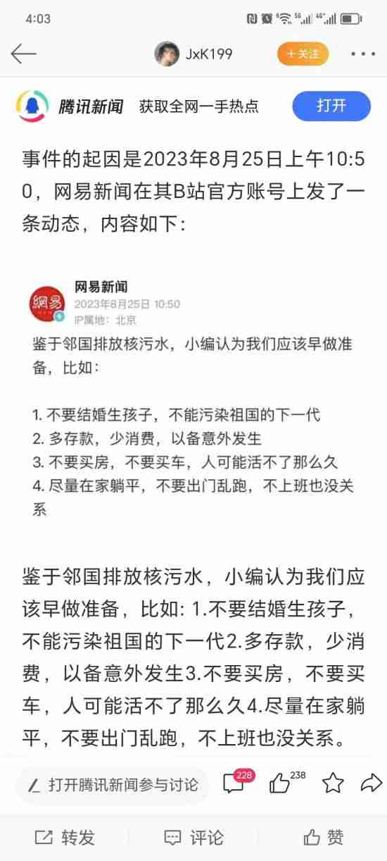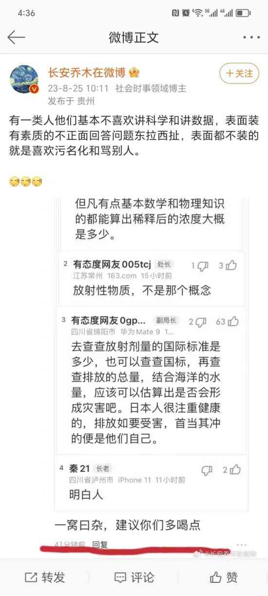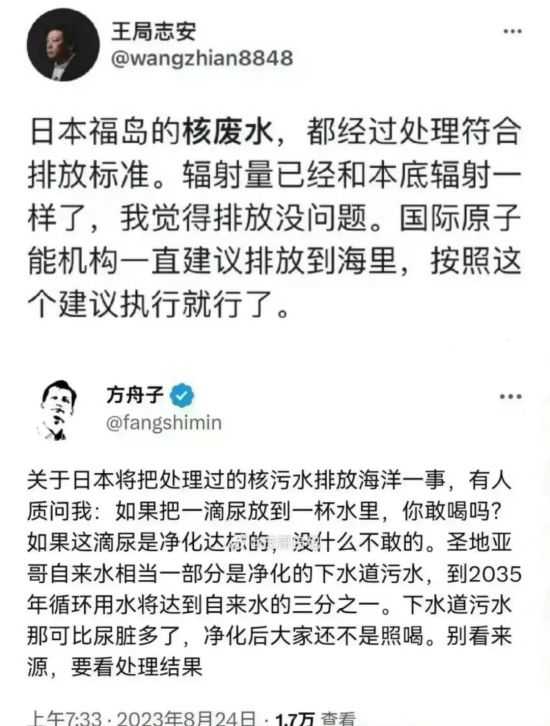 有的还不忘给反对日本排放核污水的中国人贴上不尊重科学的标签。