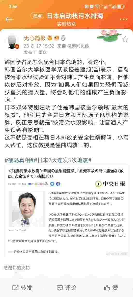 韩国的日本孝子技术含量显然更高,核医学领域权威都出来了,说核污水经过验证不会产生负面影响。