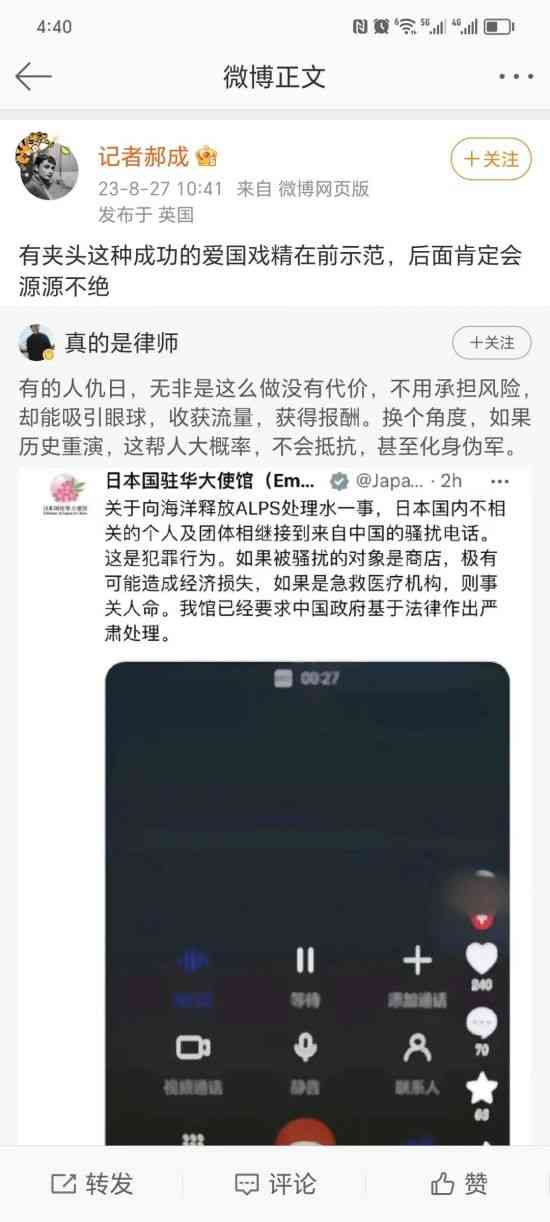 关键时候,瑞典的环保女孩都请出来给日本洗地了,她接受瑞典国家电视台采访,称日本排海行为得到美国和联合国权威认可,所以属于合法的环保行为。