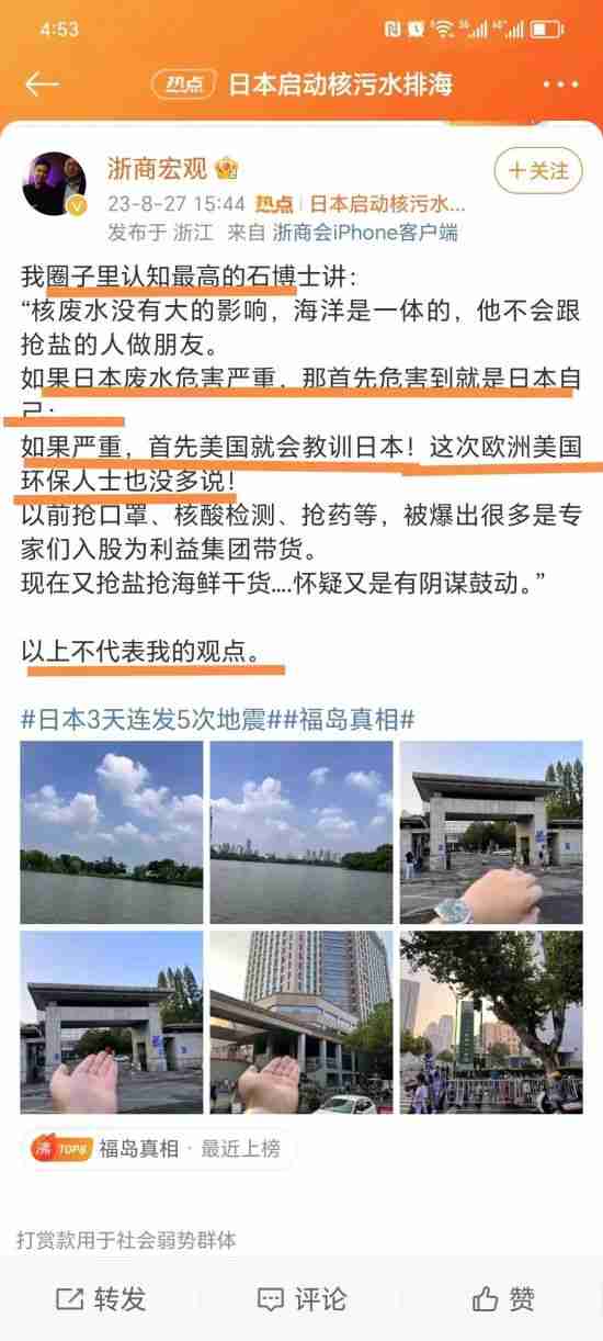 为日本人辩护的多了,就可以把反对的声音压制住。如果没人敢再说核污水有危害,那不就等于什么问题都没有了吗?