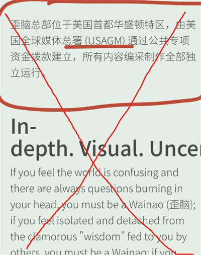 《歪脑》的总部在美国华盛顿,简介上写的清清楚楚——“由美国全球媒体总署 (USAGM) 通过公共专项资金拨款建立”。是一个彻头彻尾的为了影响渗透中国年轻人而设的境外反H媒体。