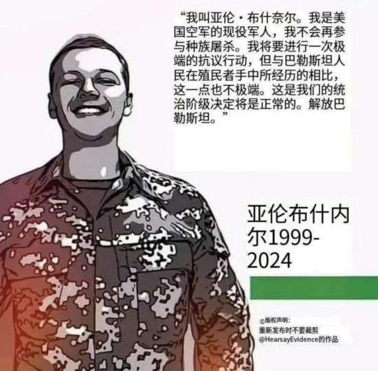 从去年12月到现在,已经有2位美国人自焚抗议以色列对巴勒斯坦种族灭绝行为,而且今天这位美国现役军人自焚,人家这还不是为了自己利益,是为了千里之外的巴勒斯坦人民。结果倒好,此等壮举本该大鸣大放,但欧美舆论圈全部哑火。