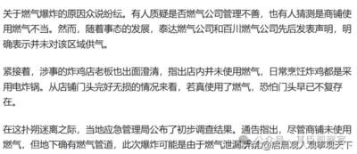 有人质疑是否燃气公司管理不善?也有人猜测是商铺使用燃气不当?