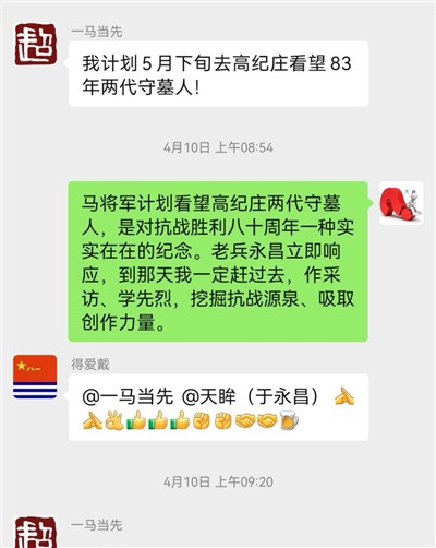 4月11日,马国超将军在微信群里发了一条信息,计划下旬去河北阜城县纪庄看望83年两代守墓人。我和戴连生大校、马萌上校立即响应。