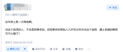 你看,新的道德标准和利益博弈,就这么被悄然无声的塑造出来了,你被塑造的过程中根本不需要有多大的主观性。当然,我们也不能极端夸大这种影响,虽然平台搞了这么多年,现实里多数正常人还是会抱着“多一事不如少一事”或者“与人方便自己方便”之类的朴素思维,尽量少找事。但显然对那些自我意识过剩,或者对精致生活要求很高的群体来说,平台的导向机制就是放大器。