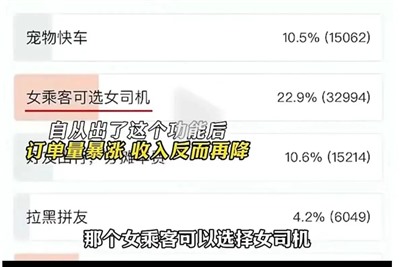 原因就像很多网友所总结的,连打车这种事情都特别在意性别叙事的用户群体,很大概率是对服务要求很多的群体。