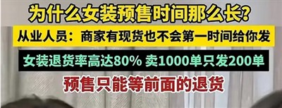 表面看起来这个新闻跟性别无关,但又在一些性别叙事者聚集的网络空间中引发强烈反应。因为女装领域是这几年网购退货的重灾区。