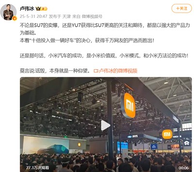 5月31日晚,卢伟冰在微博引用了这句话,疑似回应当天下午华为常务董事余承东在未来汽车先行者大会的一段意有所指的话:“大家看到,从其他行业来的这个公司只做一款车就卖爆了。虽然他的产品可能不是那么好,但卖得很爆,无论它的质量,甚至它的智驾能力都很……”