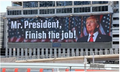 特拉维夫市中心,甚至还拉起巨幅广告,要求特朗普赶紧“帮忙”!真以为美国是以色列的狗,可以呼来喝去、随便使唤了?