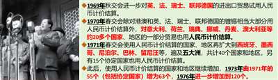 《中国银行史》记载,毛主席时代外贸通商如火如荼,敢于挑战美元霸权,持续推动人民币国际计价结算——“自1968年广州春交会开始试行人民币计价结算”“1969年春交会开始,对远洋出口贸易也试用人民币计价结算,先是从英国开始,仅天津口岸就做了17笔,基本顺利。此后,一发不可收拾:
