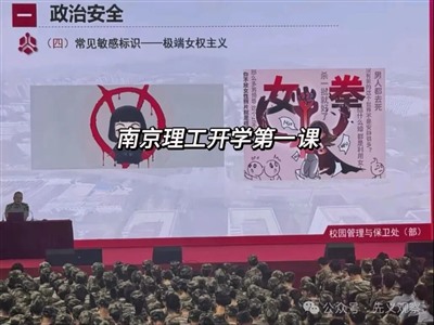 当下打响第一枪的,当首推南京理工大学,南理工开学第一课,打响了反对极端女权主义的第一枪,旗帜鲜明地表示表示大学校园不是敌人推行极端女权主义的乐园,更不是西方推广它们价值观的法外之地,不允许西方那些带着腐朽气味的极端反动的东西在校园肆意传播。