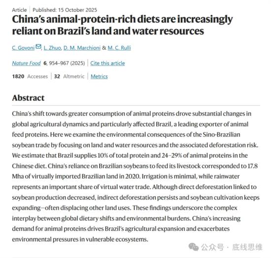 这段话是近期发表在《自然》杂志上的一篇学术论文摘要,读起来是不是味道特别熟悉?上一个类似的说法还是“中国人每吃一块肉,亚马逊雨林就冒出一股烟”。按照这种逻辑,也不知道亚马逊雨林都已经毁灭几次了。
