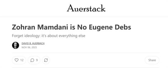 Eugene Debs告诉我们,危机即将(已经)来临,这个危机是资本主义的危机,它不可以被治愈,我们不能假装看不见它,而Mamdani则继续向我们保证,一切会重回正轨:特朗普的暴政是暂时的,美国将会再次平静。Debs说,‘对于我们这些还活着的人来说,这会是激动人心的日子。危机的日子临近了,社会主义者要做的就是竭尽全力使人民作好准备。是的,旧的社会秩序还能维持,但它的时日已经不多了。很快,少数人将成为多数人,然后是合作的共同体。每个工人都应该团结起来,加速实现完全自由的那一天。’Mamdani却说,‘单身母亲将会感受到这一点,她的通勤很安全,而且足够方便。当纽约人早上打开报纸,阅读到的头条新闻是成就而不是丑闻时,就会产生这种感觉。’——他忘了说,这不会在明天到来,除非你们现在就行动起来。
