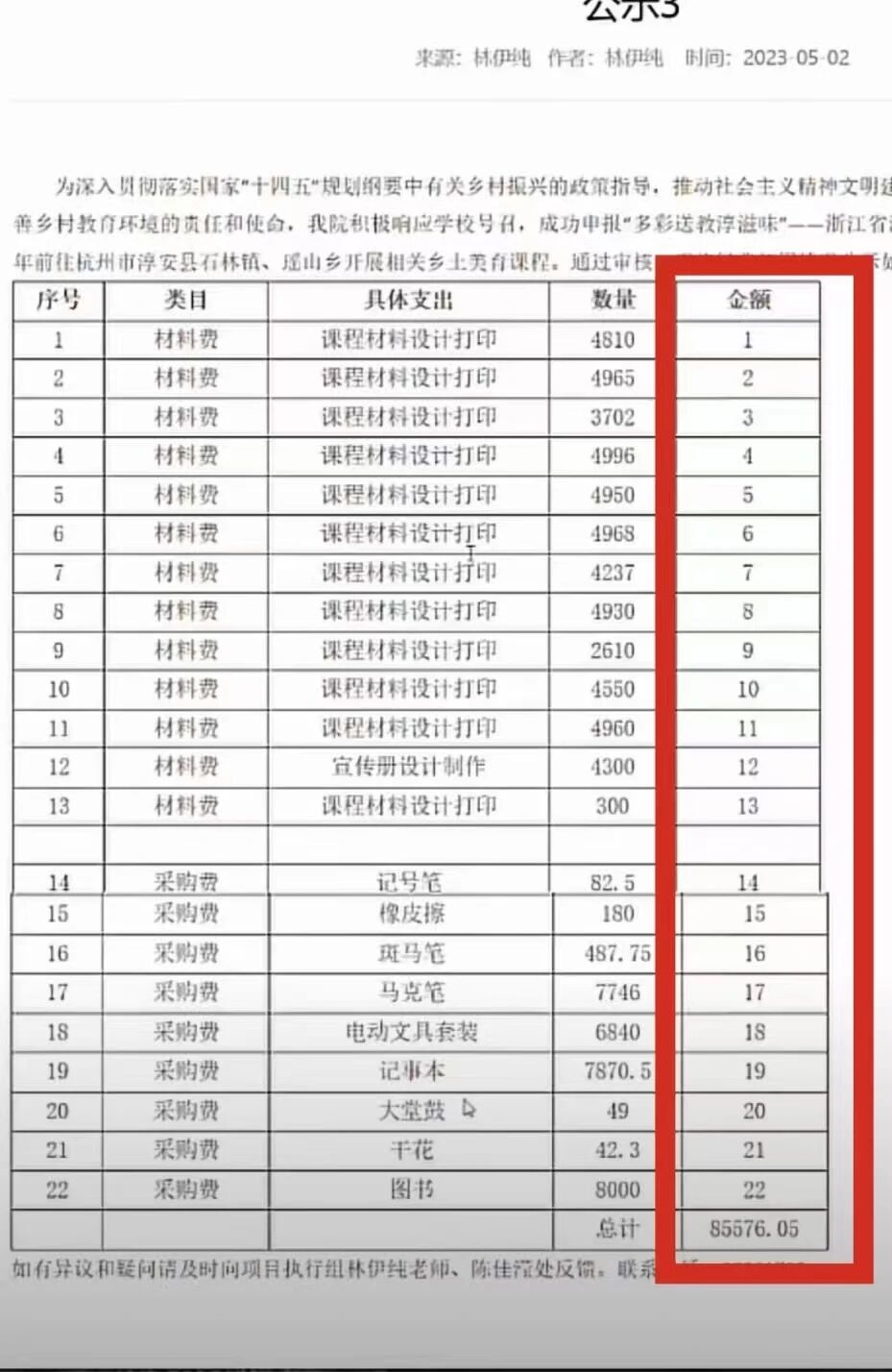 把这事捅出来的博主【风长Long wind】在发现这事的时候,就预判到出事了他们肯定会删除公示,于是没曝光之前就把支出明细保存了下来。