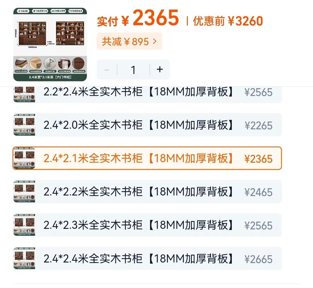 首先映入眼帘的是5万元一个的书柜,买了3个。是的,5万一个……