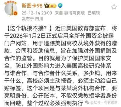 美国教育部将于明年正式启用全新外国资金披露门户网站,这点我们完全可以仿效。