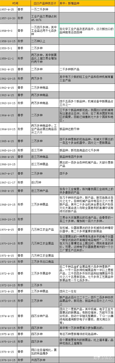可以看到,出口品类逐年增加,几乎每届都会有创新品种。