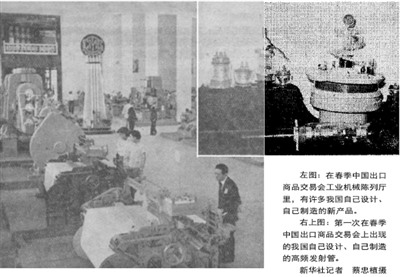 “一些欧洲国家如法国、英国、西德、荷兰、比利时、意大利也购买了我国部分机器和车床。还有第一次在春季中国出口商品交易会上出现的我国自己设计、自己制造的高频发射管。”