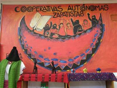 萨帕塔主义者(Zapatistas)是一个极左翼激进组织,控制着墨西哥最南端的州恰帕斯州的大片领土。图为萨帕塔合作自治组织的墙绘。