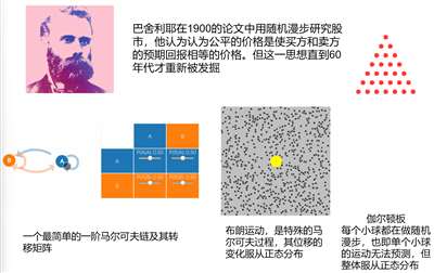 化学实验中的布朗运动/维纳过程,与高尔顿板实验类似,可视为一维布朗运动的高维拓展。置入墨水中的花粉团,在周围墨水颗粒热运动的碰撞下,向不同方向随机移动,这便是二维或三维布朗运动。巴舍利耶早于爱因斯坦研究了这一过程,此后诺伯特·维纳(Nobert Wiener)给出了布朗运动的一般公式,后来数学家发现它是一种特殊的马尔可夫过程。维纳过程中每一实例的独立增量(如布朗运动中花粉每一次碰撞后移动的路程长度),服从高斯分布(其他马尔可夫过程的增量服从其他分布)。