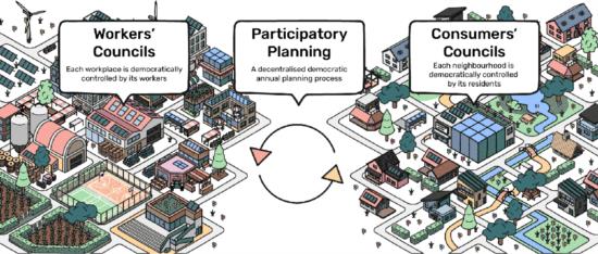 (1)每个家庭指定其期望的年度消费组合,并提交给邻里委员会。批准与否取决于家庭是否在其分配的购买力范围内。邻里委员会提交的总消费请求(也包括对社区内可提供的去商品化商品的生产和维护的集体请求),由更高层级的邻里委员会理事会接受或拒绝。