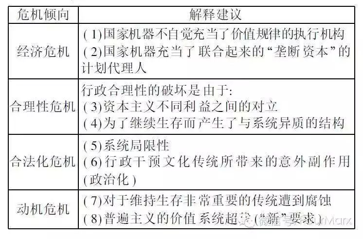 这两种传统客观上共同造成了哈贝马斯文章中谈到的发达资本主义国家、发达市场经济国家或福利国家。一般而言,这就是我们所看到的二战后西欧和北美的情况——由高度发达的市场经济、民主政治和国家干预的经济和政治组织形式——我们可以称之为“发达资本主义”,可以称之为当代资本主义政治形式,等等。这是哈贝马斯分析的物质前提和制度前提,就是说,他分析的是当代发达资本主义或晚期资本主义,问题的指向是它们并没有消除经典马克思主义分析的那种资本主义结构性危机,而只是相对成功地把危机从经济领域稀释或扩大到整个社会领域、政治领域和文化领域。哈贝马斯的观点是:这一方面是当代自由民主资本主义体制的成功之处,因为它以福利国家和财富二次分配的方式缓解了生产领域的结构性危机和由此而来的阶级冲突和社会矛盾,但另一方面,却又通过国家政策的杠杆,把危机转嫁到政治、社会、文化和价值领域,使它真正变成了“总体性危机”,即“合法性”或“正当性”危机。同法兰克福学派老一代思想家(如霍克海默、阿多诺和马尔库塞)相比,哈贝马斯在理论分析的“科学性”和政治经济学指向上,其实都更接近马克思,也向马克思一样吸收了大量“资产阶级社会科学”的研究成果,包括一些量化统计和分析。