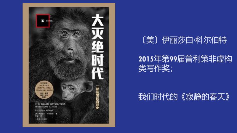 我们人类和人性是复杂和多样的,是很有韧性的,也是很脆弱的。我最担心的是,有些人了解了现象之后,产生过多负面情绪,不仅没有带来积极变化,反而导致情绪崩溃。为了预防这种情况,可以有各种做法,包括:(1)我们需要建设互助型的社群交流;(2)用行动来促进积极的改变;(3)还有就是拓展自己的视野,我推荐一本书《大灭绝时代》。跟随地质学家的脚步,跟随生物学家的脚步,走进热带雨林,走进海岛,走进博物馆,用人类文明和科学的视角去观察和发现地球历史上的前五次大灭绝,和此时正在发生的第六次大灭绝。当纵观地球45亿年历史的时候,当亲历由于人类在人类纪所造成的毁灭的现场的时候,人的视角和情感可能会发生变化。毫无疑问,人类现在已经独霸地球,人类在生物地层学上已经留下永久的印记。