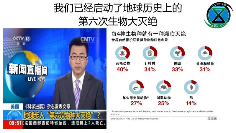 2018年10月31日,在英国首先掀起了反抗灭绝(extinction rebellion)运动。当我有一次和别人提及这个概念的时候,别人问我:“是什么要灭绝了?”我说: “这次是人类面临灭绝的危机。”