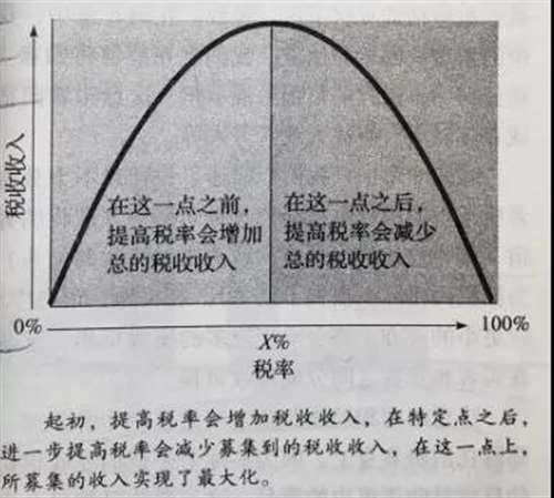 曲线右边,表示税率已经过高,增加税率只会重创商业活动,反而导致税收减少,因此应该减税。