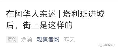 前天,《观察者网》公众号推送了一篇文章——《在阿华人亲述 | 塔利班进城后,街上是这样的》。