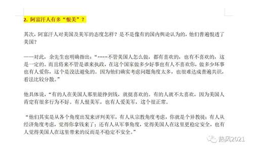 据我们看,这篇文章(实际是采访)虽然出自观网,但他们那帮人却并不能抓住文章真正有价值的信息点,从而穿透国家、民族、宗教、国际政治等重重迷雾,发现阿富汗备受关注的局势及其演变背后真正具有决定性意义的东西,也是真正与当地社会结构和人民生活有关的东西。