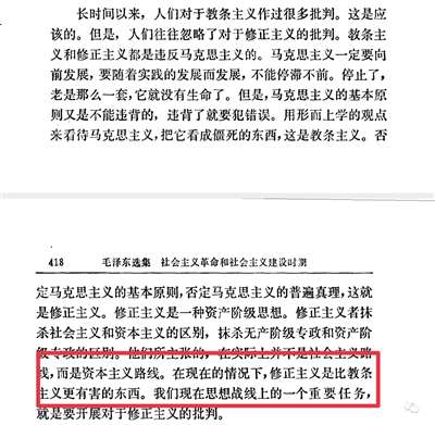 殊不知今天中国社会,无论如何已经不是一个半殖民地;而到处照搬半殖民地时期我们的特定判断、我们的革命策略,忽视半个世纪来变化了的社会实际——才是不折不扣的“教条主义”啊。