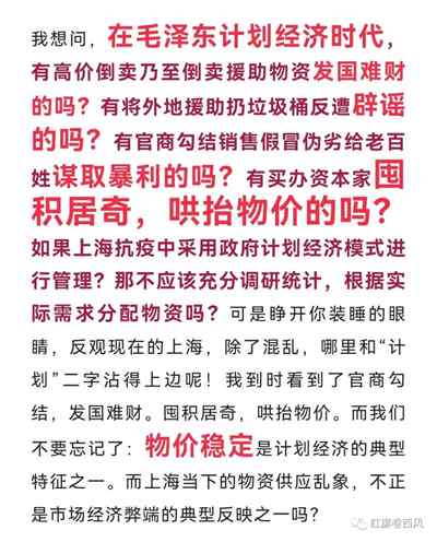 一句话,不是计划经济惹的祸,也不是计划经济的问题,而是贪官污吏(杀!)导致了上海物资供应保障问题,是奸商资本家(杀!)导致了上海物价飞涨,市场混乱,舆论谣言四起。