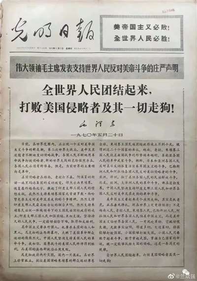五十二年前,1970年5月20日,毛主席发表《全世界人民团结起来,打败美国侵略者及其一切走狗》的庄严声明。这篇光辉文献,标志着一代伟大的马克思列宁主义者,站在国际共产主义运动的历史最高点上,发出了反对帝国主义、特别是反对以美帝国主义为代表的资本霸权的时代最强音。