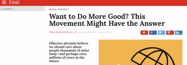 Want to Do More Good? This Movement Might Have the Answer. Naina Bajekal, Time, Aug. 10, 2022 Issue.