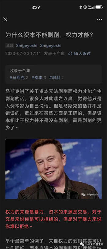 总有一些煞笔,他们不觉得自己是煞笔,反而觉得群众是煞笔,就公然的把剥削的责任转嫁到所谓“权力”上,就能把他资产阶级主子洗的一清二白,这是纯粹的胡扯,权力不是生下来就有的,不是天然存在的,堪比地震海啸的带在人类降生就存在的特质,而权力所有的压迫,暴力的能力,一定是有人授予他的,那么是谁授予了权力主体脱离生产,专心统治的暴力能力呢?答案就是剥削阶级。