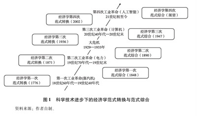 可以将本文所述的全部内容,即伴随着人类科学技术的不断进步所催生的经济学发展历史的轨迹,以一张浓缩的简图表示,见图1。