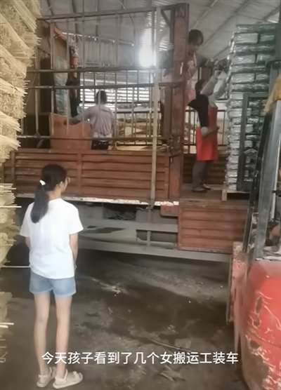 在蜀南竹海的筷子厂装货时,女儿见到了女搬运工,不理解为什么会有女搬运工,罗师傅告诉女儿,女搬运工是很辛苦,但生活所迫,这些四五十岁的妇女能在家附近找到这份工作已经很不容易了;
