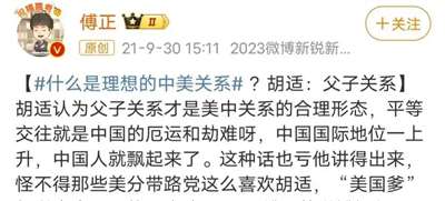 推崇胡适的人,在舆论上跟岛内是有很高的配合与默契度的,甚至在祖国统一的问题上,他们跟岛内的暗独势力也保持着一致,或者只谈和平,不谈统一,或者谈统一时,只允许和平方式。