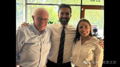 2025年9月6日,伯尼桑德斯(Bernie Sanders)、佐兰马姆达尼、亚力山德里亚奥卡西奥-科尔特兹在纽约皇后区阿斯托城亚。图片来源:@ZohranKMamdani via X. (cropped)