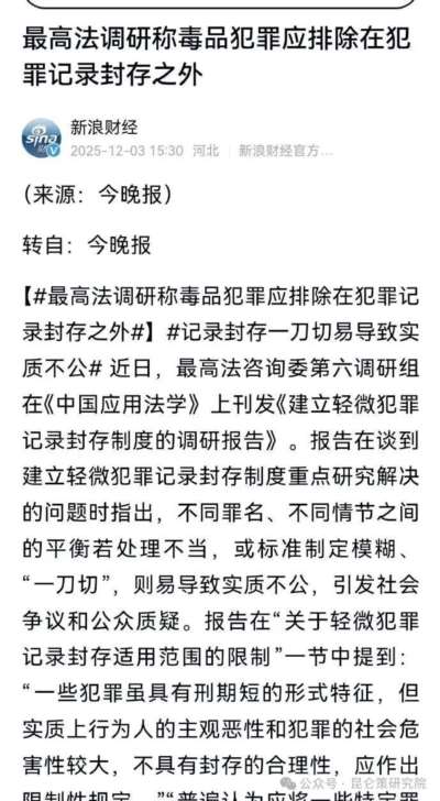 比如最高法的调研也指出,毒品犯罪应排除犯罪记录封存之外!这份报告出台时间比较晚。但是在报告出台之前,大概率也有人提出过反对意见。不过涉毒轻罪化法律也还是通过了。