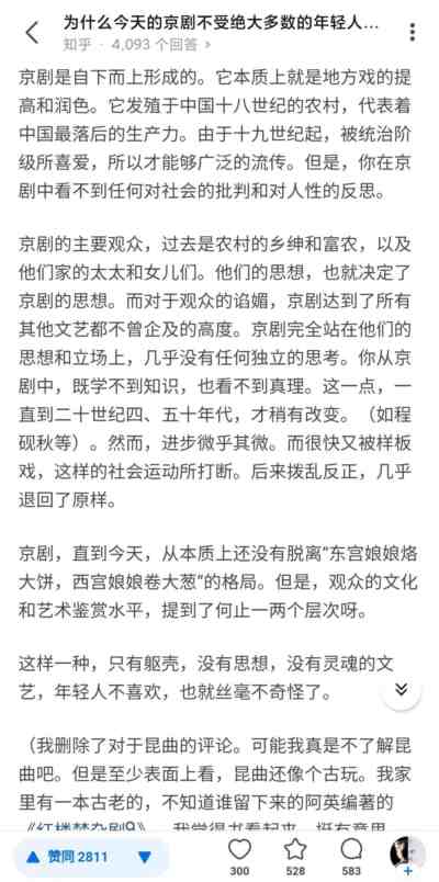 其实,不只是这次被恋爱脑大批判殃及池鱼,京剧被骂的次数也不少了,在有些人口中,京剧成了旧时代的封建糟粕、地主阶级的文化代言。