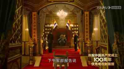 袁世凯和他的手下商议要不要同日本签“二十一条”的场所,算是袁世凯的议事堂吧,整个布置可为不土不洋,不中不西,不新不古,不是封建皇帝,但也不是共和总统,暗示北洋军阀治下的民国,在政治上不伦不类。