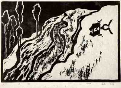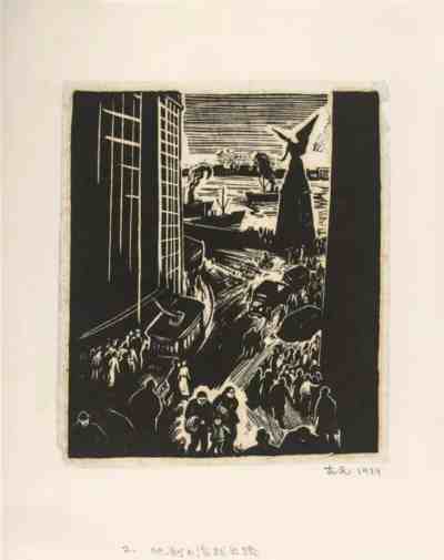 木刻作品《走向自由之二:他到上海找出路》,古元,14×11.8cm,1939年