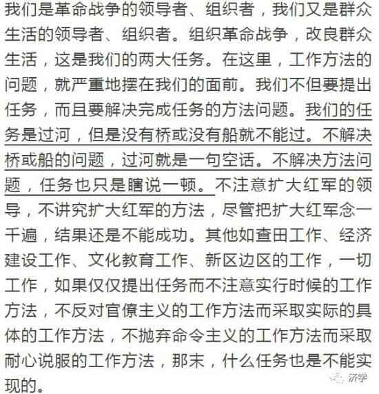 【我们的任务是过河,但是没有桥或没有船就不能过。不解决桥或船的问题,过河就是一句空话。不解决方法问题,任务也只是瞎说一顿。】