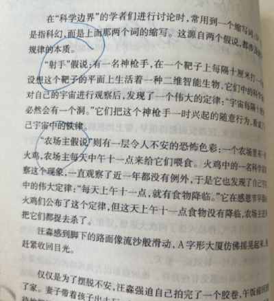 1、小说一开始,就从女物理学家杨冬读自杀,导向对物理学基本规律是否存在的质疑。