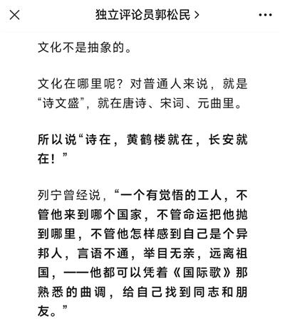 不知道郭松民老师是否看过白头豕的原文,如果仅凭一句“长安兴,诗文盛!诗文盛,长安亡!”有此论断,显然是对原文逻辑的误读。