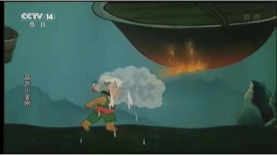 四娃(火娃)可以喷火御敌,妖精就祭出大锅饭,并且把锅越变越大(浮夸风、共产风),让火娃烧饭,在火娃烧得精疲力尽的时候,再猛浇一盆冷水。(这一幕让笔者想到了1958,也想到了主流经济学家搞垮国营企业的“吐痰理论”)